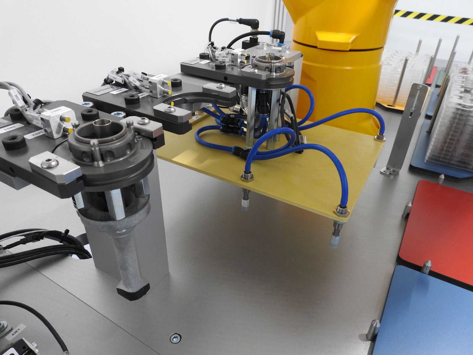 Elektrische und pneumatische Anschlüsse sind direkt am Vorderarm nahe des Flansches